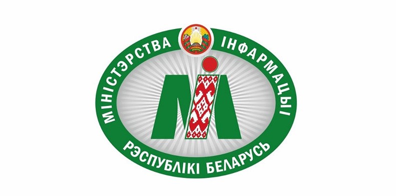 Александр Лукашенко подписал Указ № 277 «Аб афіцыйных геральдычных сімвалах Міністэрства iнфармацыi».Эмблема представляет собой овал серебристого цвета с расходящимися от центра лучами, который обрамлен каймой зеленого цвета. В центре размещена аббревиатура "МI". Флаг воспроизводит изображение эмблемы.